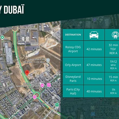 Апартаменти Le Chessy Disney - Logement Pour 6 A Disneyland Paris Avec Vue Sur Le Feu D Artifice розташовані в межах 10 хвилин їзди машиною від Діснейленду і мають Wi-Fi як для бізнесу, так і для відпочинку. Бутик-містечко Ла Валле Віладж знаходиться за 19 хвилини пішої прогулянки, а аеропорт Міжнародний імені Шарля де Голля - за 40 км від апартаментів.